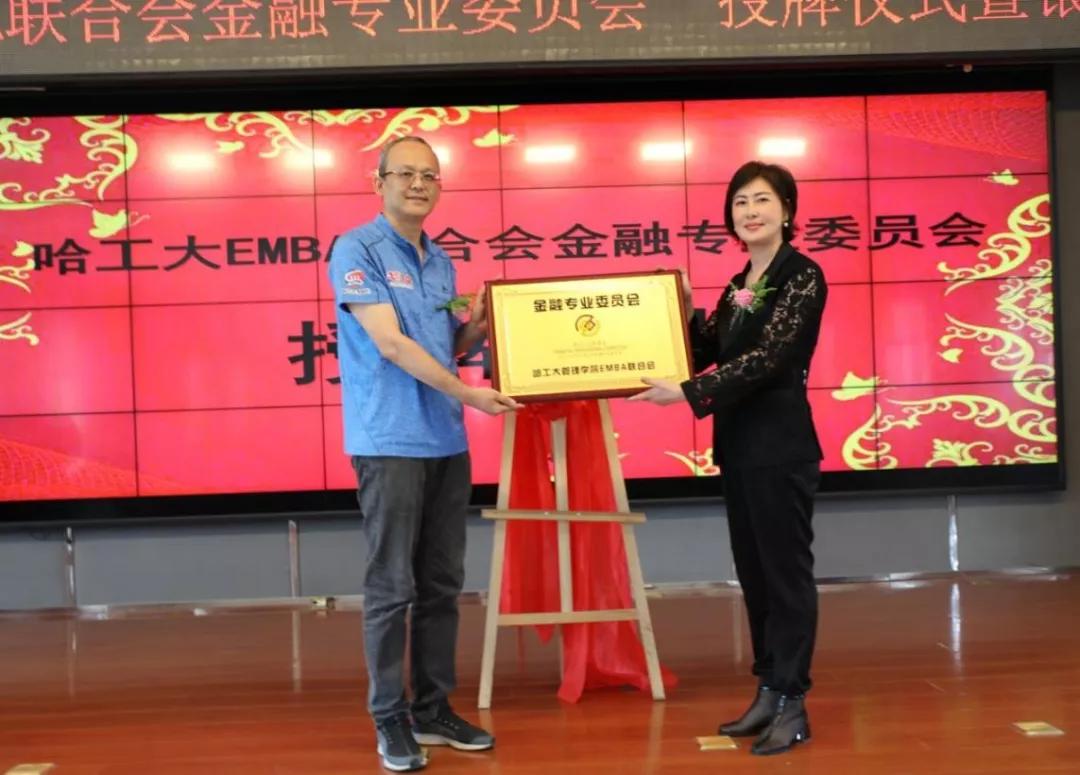 隨後,哈寧副主任向金融專業委員會授牌,並希望哈工大EMBA校友能夠傳承哈工大百年精神,充分發揮精英作用,大展身手,領舞龍江。