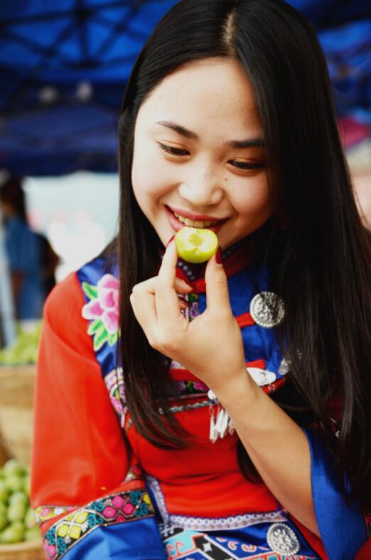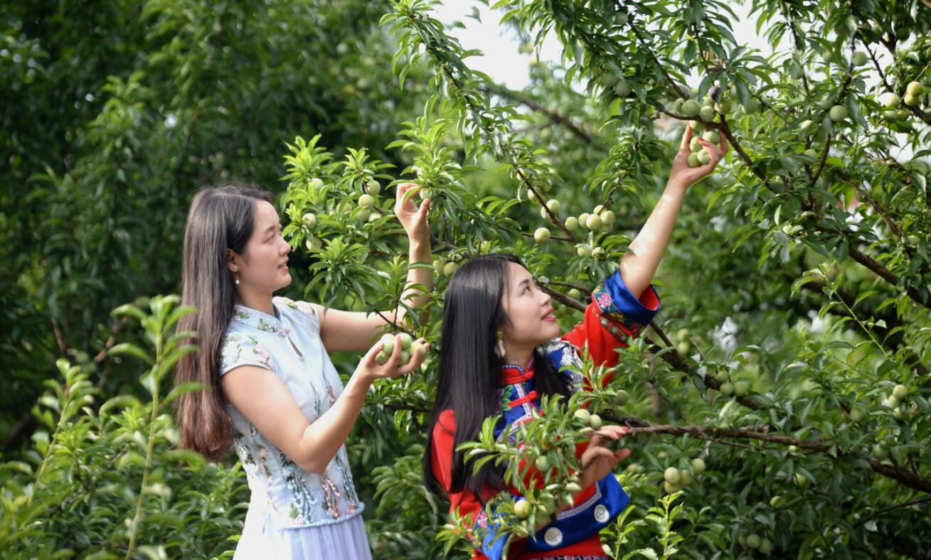 「來嘛,來嘛。我家的李子又大又甜,真安逸。快點來買點帶回家去嘗嘗,馬上就沒得嘍。」在該村村委會空心李展示區,該村村民們紛紛背來自家栽種的空心李向來自遠方的遊客們介紹自家的空心李。