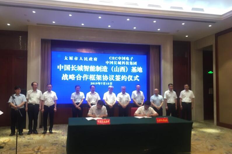【香港商報網訊】記者 王利萍 報導:7月15日,太原市人民政府與中國長城科技集團股份有限公司簽署中國長城智慧製造(山西)基地戰略合作框架協定。山西省委常委、太原市委書記羅清宇,山西省政協副主席、太原市委副書記、太原市長李曉波會見中國電子資訊產業集團有限公司黨組副書記、總經理張冬辰,中國長城科技集團股份有限公司黨委書記、董事長宋黎定一行。