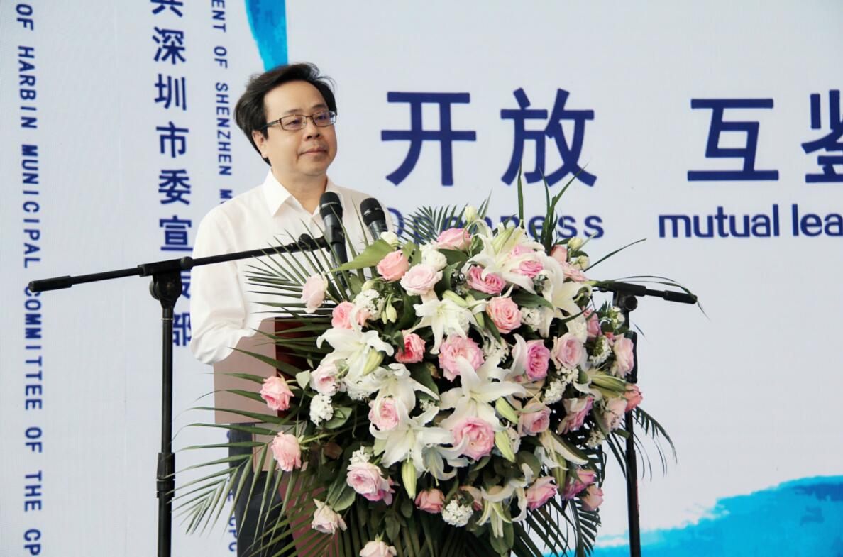 張萬平在致辭時表示,南北聯動、文化引領。經濟發展、文化先行。兩年多來,哈深兩地宣傳文化部門堅決落實國家戰略,共同謀劃生成了一系列合作項目,取得了豐碩的合作成果。特別是兩地宣傳文化部門着眼推動東北亞地區之間經濟和文化合作而舉辦的東北亞文化藝術博覽會,受到了各方廣泛關注,得到東北亞國家的積极參与,成為展示哈爾濱和深圳城市形象、促進東北亞區域文化交流合作的重要平台。第二屆東北亞文化藝術博覽會乘着「一帶一路」建設的東風,讓各國朋友在此鑒賞文化藝術精品,暢談文化合作未來,共享文化發展成果,必將推動東北亞地區不同文化的交流融合,促進地區間的民心相通和思想融通,為區域合作奠定更加堅實的民意和社會基礎,提供更加有力的文化支撐。