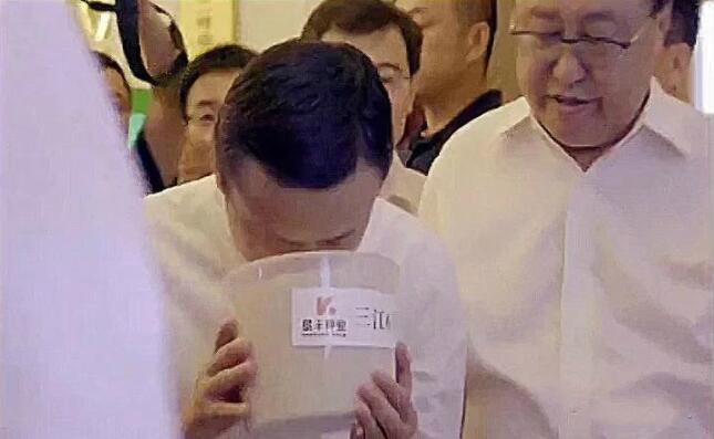 簽約儀式前,阿里巴巴集團董事局主席馬雲一行參觀了龍江優質農產品展覽。在眾多產品中,墾豐種業「三江6號」種子米受到了馬雲的關注和點贊。他捧起一桶剛磨出來的新鮮「三江6號」大米,聞香氣,看粒型,聽介紹,稱讚道:「真不錯!」
