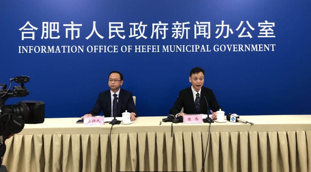 2019年上半年合肥市經濟運行情況新聞發佈會現場,右為陳偉