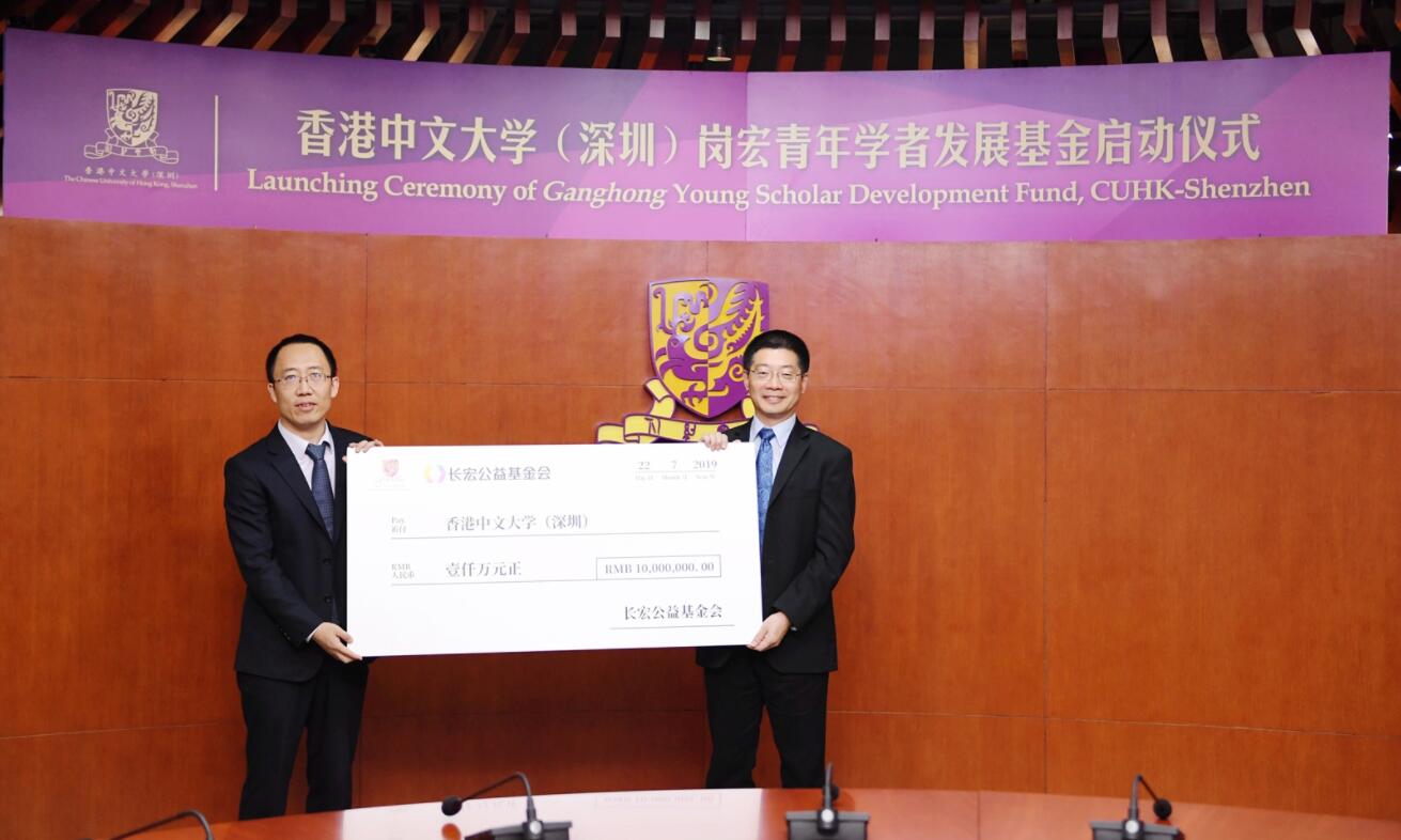 【香港商報網訊】記者 林麗青 報導:7月22日,香港中文大學(深圳)舉行「崗宏青年學者發展基金」啟動儀式。「崗宏青年學者發展基金」由深圳市長宏公益基金會捐贈一千萬元人民幣,用以支持香港中文大學(深圳)生命與健康科學學院優秀青年學者的科研項目,包括為其提供部分科研經費、項目發展經費及博士生與博士後培養經費等,致力於為青年學者的成長與發展提供支持,推動香港中文大學(深圳)生命與健康科學領域的科研發展,形成臨床、企業與高校研究的良好互動,在生物科技產業的前沿領域,發掘、孵化及培育一批可落地的成果。