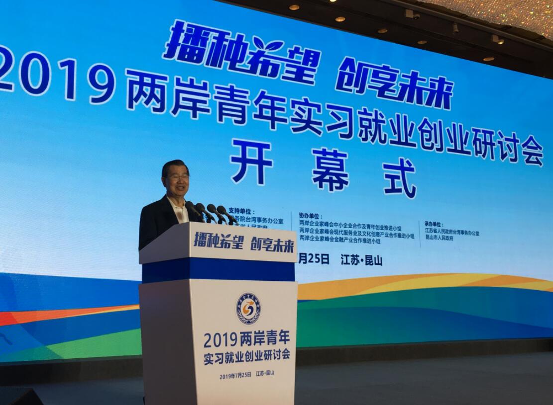 【香港商報網訊】記者 杜林 宋璟 報導:2019兩岸青年實習就業創業研討會7月25日在江蘇昆山開幕。兩岸企業家峰會台灣方面理事長蕭萬長表示,新興科技湧現及大陸經濟繁榮成長,為台灣青年創造新選擇,提供新機會。