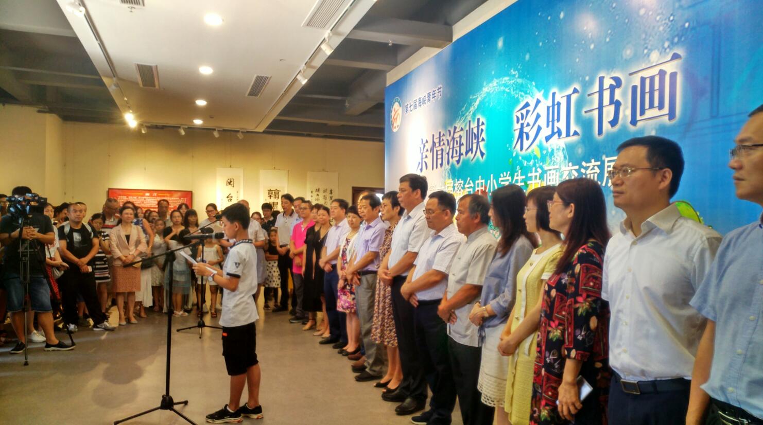 26日,第七屆海峽青年系列活動之第六屆榕台中小學生書畫交流展在福州畫院開幕,來自海峽兩岸的部分獲獎作者、指導教師代表、隨團家長等500多參加開幕式及相關活動。