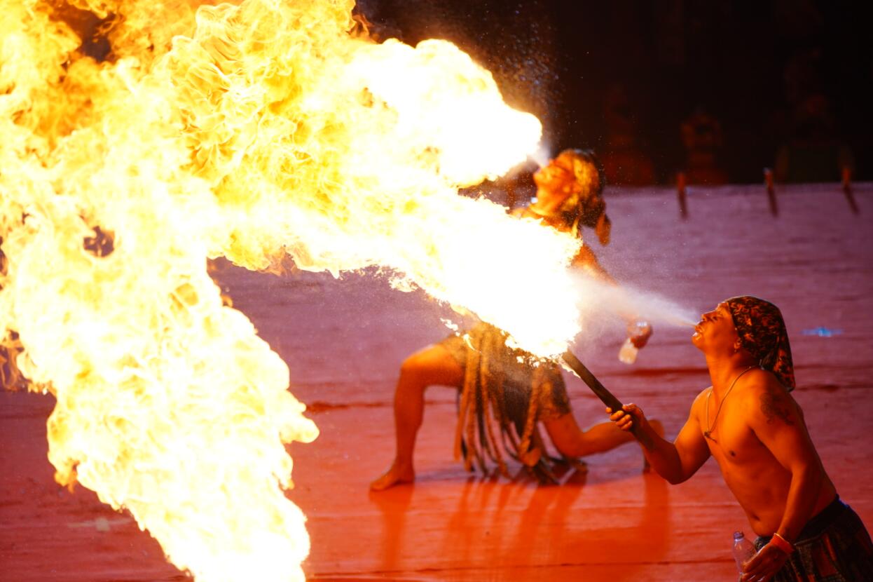 【香港商報網訊】彝族人民崇尚火,火不僅代表彝家山寨的質樸溫暖,也代表彝族兒女的熱情奔放,更是彝州人民生生不息、開拓進取的精神指引。7月26日,中國·楚雄2019彝族火把節「祭火大典」在太陽曆文化園舉行,大家身着盛裝,載歌載舞,「玩火」狂歡。