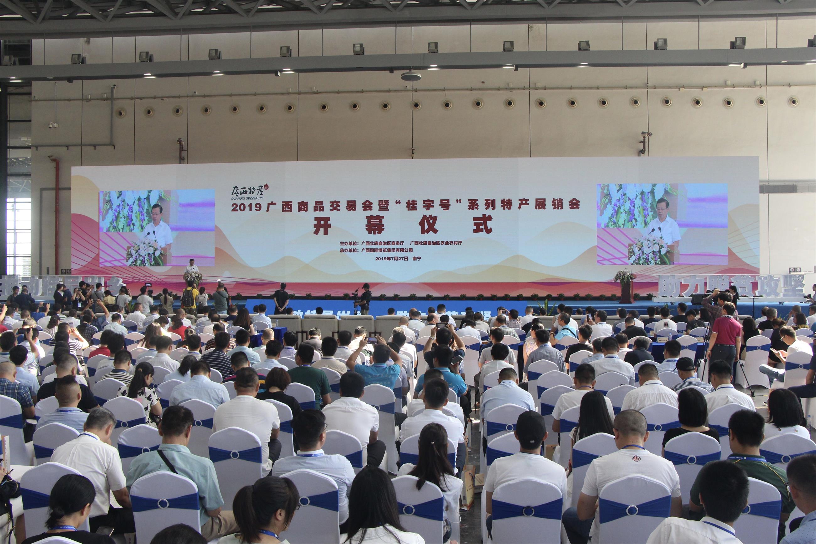 【香港商報網訊】記者 徐玉瑩 報導:7月27日,2019廣西商品交易會暨「桂字號」系列特產展銷會在廣西南寧國際會展中心開幕。此次展銷會以「推動桂品出鄉、助力脫貧攻堅」為主題,600多家廣西名優特產企業和500多家採購商集聚南寧開展洽談對接,旨在加強產銷對接,促進農產品流通,推動廣西特產行銷全國。
