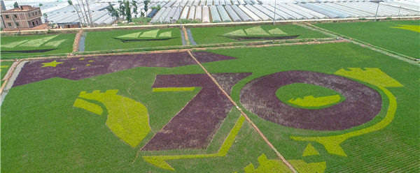 【香港商報網訊】60畝水稻可以用來幹什麼?「繪畫」唄!雲南昆明晉寧區晉城鎮的沙堤村就用土地當畫布,用60畝彩色水稻為筆墨,打造令人叫奇的網紅稻田,為新中國的70年誕辰獻上了一份特色鮮明的禮物。