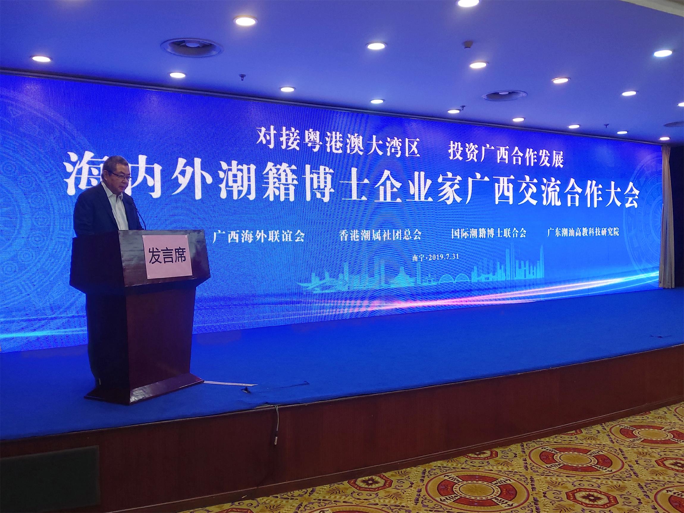 廣西壯族自治區黨委常委、統戰部部長,廣西海外聯誼會會長徐紹川在致辭中表示,區位通道、政策疊加、生態資源等優勢,推動廣西成為粵港澳大灣區的投資窪地、國內外客商的投資熱土。廣西全力推進粵桂合作特別試驗區、粵桂黔高鐵經濟帶合作試驗區、桂東承接東部產業轉移示範區等重大合作平台建設,重點推進以產業承接為重點,聚焦大健康、大數據、大物流、新製造、新材料、新能源等「三大三新」重點產業,加強與大灣區產業補鏈式對接;依託廣西特色農業和旅遊生態資源,打造大灣區「菜籃子」和「後花園」;藉助大灣區現代服務業優勢,結合CEPA先行先試,加強會展、金融、服務貿易等合作。