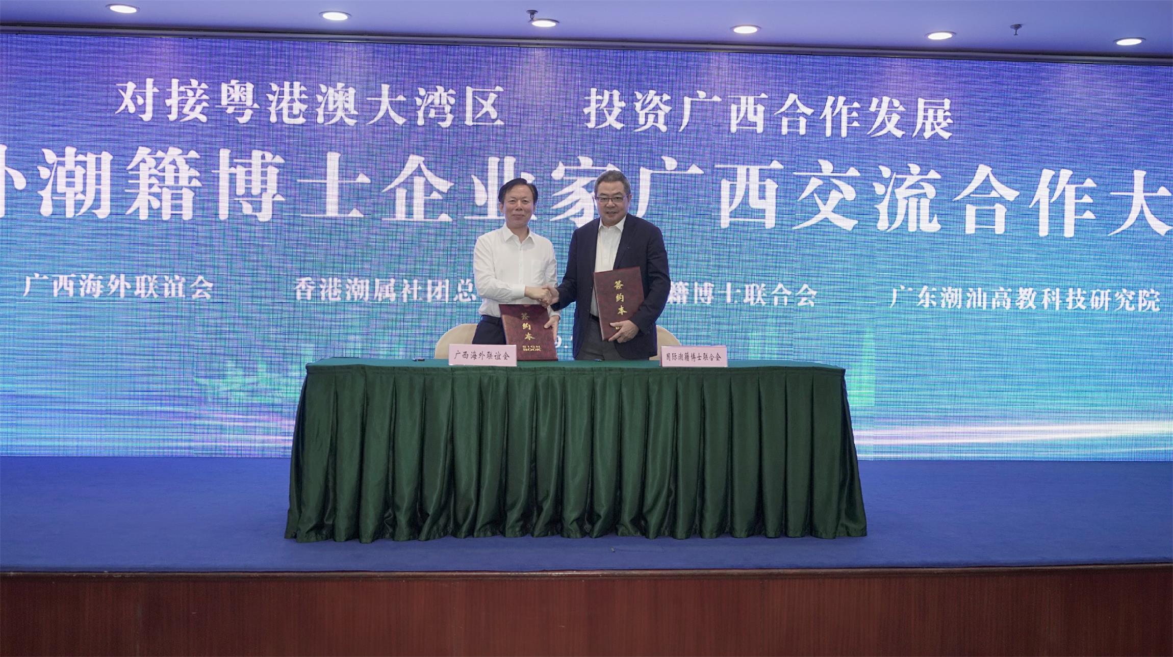 會上,廣西海外聯誼會、廣西壯族自治區留學人員和專家服務中心與國際潮籍博士聯合會簽訂交流合作工作備忘錄,並向與會嘉賓頒發廣西高校聘任榮譽(客座)教授證書。