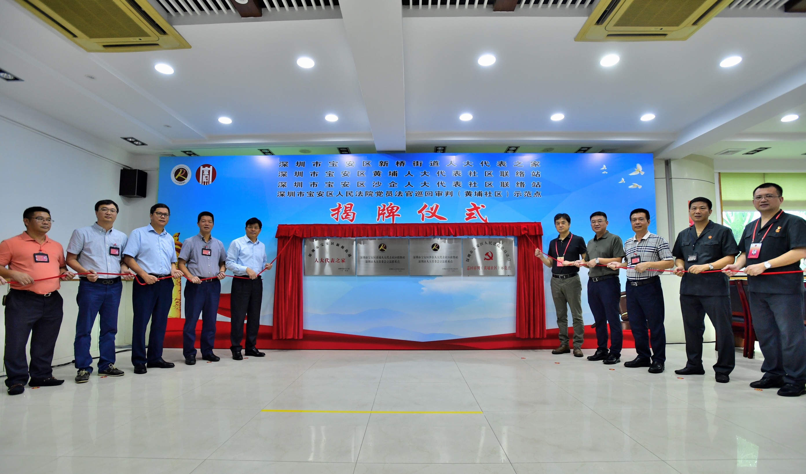 【香港商報網訊】為密切人大代表與人民群眾聯繫,激發人大代表依法履職熱情,更好發揮人大代表作用。8月1日下午,廣東省深圳市新橋街道舉行「人大代表之家」、「黃埔人大代表社區聯絡站」、「沙企人大代表社區聯絡站」、「深圳市寶安區人民法院黨員法官黃埔社區巡迴審判示範點」的揭牌儀式暨開展升級版「人大代表講堂進社區」——巡迴審判進社區網絡直播活動。寶安區人大常委會主任張志彪,副主任趙俊平,寶安區法院黨組書記、院長馬文權,新橋街道黨工委書記衛樹強,黨工委副書記、人大工委主任高偉光,轄區部分「兩代表一委員」,街道人大工委辦,司法所負責人,沙井法庭相關人員,街道各社區負責人以及黃埔社區居民代表約70人參加。街道黨工委副書記、人大工委主任高偉光主持了活動。