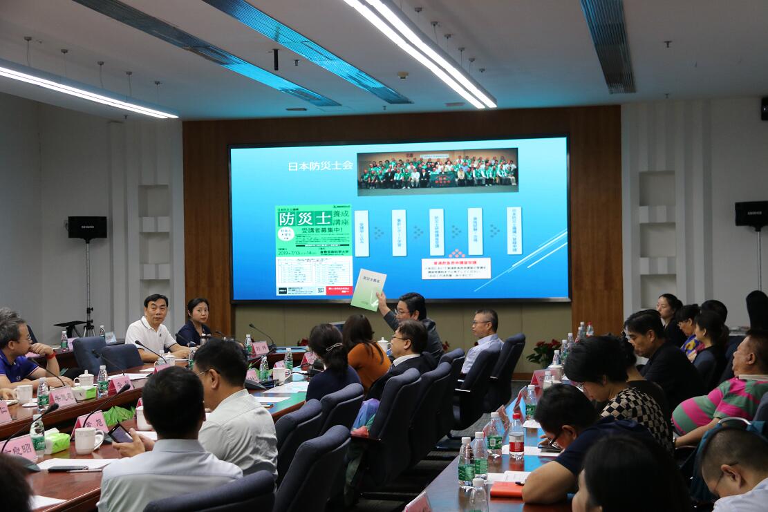 減災救災聯合會,我們準備了60多個專家委員會,昨天山本先生問我最要緊的是什麼?我說建立一個減災救災的體系,也就是自救與互救相結合的體系,其中有一個重要的體系是專家隊伍的體系,專家委員會我們就準備了60多個,其中現在已經成立了21個,還有39個正在籌備之中,涵蓋了各個方面,比如像社區治理,中國和日本有點不太一樣,我們的社區比較大,社區裏面的問題就比較多,一個社區裏面都是幾千人到數萬人。還有色彩和光污染,還有金融安全,這裏面涉及面非常大,包括心理危機和干預,這個專家委員會就在這個樓上。這是我們已經成立的,還有正在籌備之中的,這些涉及面都是非常廣、非常大的,這是已經成立的,今年我們還準備要籌備成立這些專家委員會,其實這個面是非常廣的。
