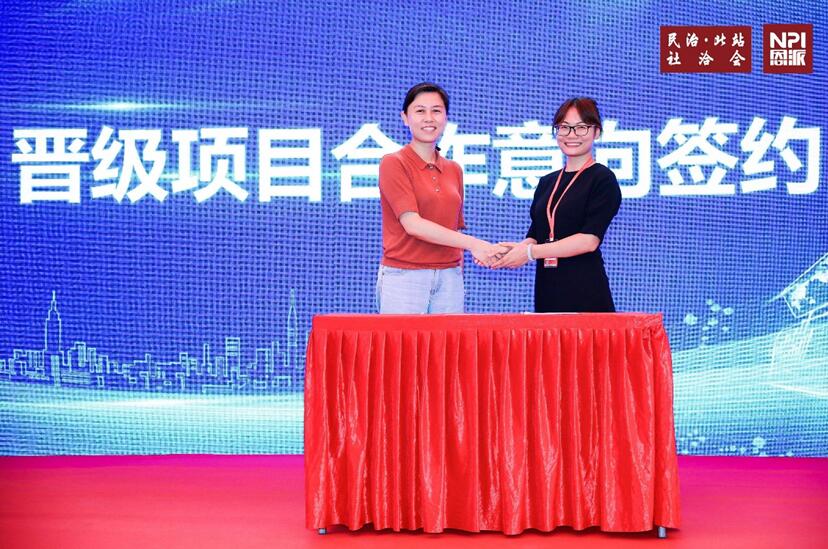活動最後,民治街道辦統戰和社會事務科科長,鄧梅女士、北站社區工作站副書記,鄭陽女士作為代表與社會組織代表現場進行專案意向簽約,後續這些優秀的專案將繼續通過盡職調查、專案優化、專案評審,最終確定入選民微專案庫。我們期待這些專案能推動社區精准化、精細化服務的發展,激發了社區居民活力,為北站社區的共建共治共用做推動。