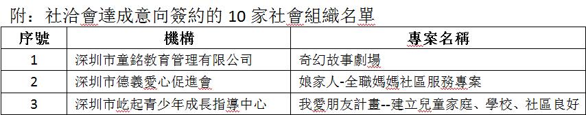 經過最後的路演和提問環節,最後《社區綠種子孵化計畫》、《奇幻故事劇場》《我愛朋友計畫—建立兒童家庭、學校、社區良好安全的交往》等10個專案表現搶眼,脫穎而出,民治街道統戰和社會事務科、北站社區代表與專案方各社會組織代表現場進行意向簽約。後續這些勝出的優秀專案將繼續通過深入調查、專案優化、專案評審,最終入選民生微實事專案庫。