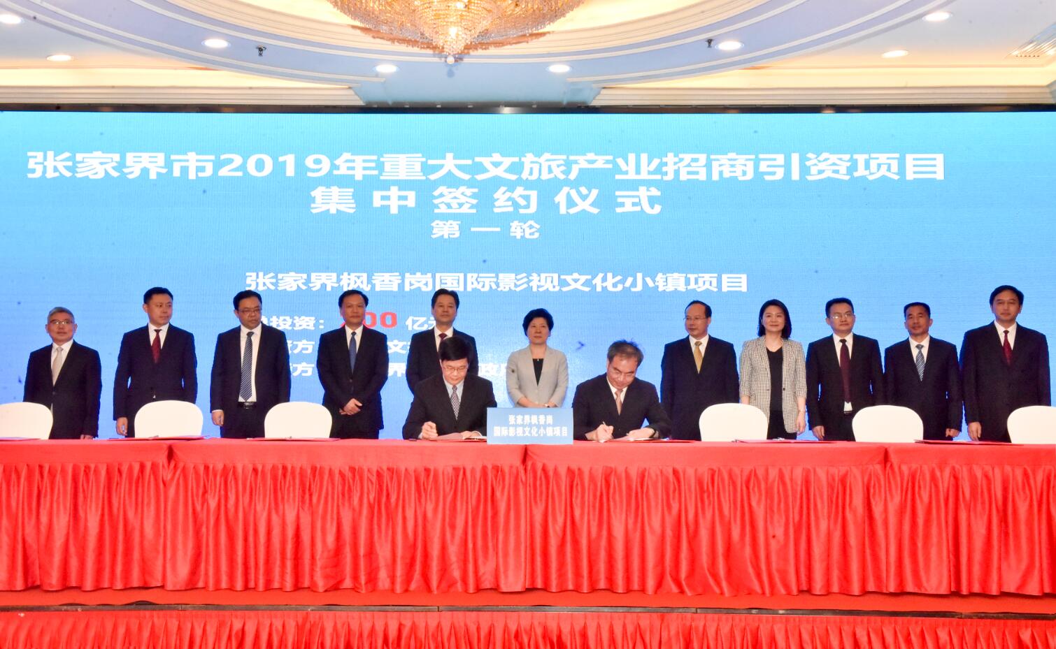 【香港商報網訊】記者 張思靜 報導:湖南省張家界2019年重大文旅產業招商引資項目集中簽約儀式5日在長沙舉行。此次,張家界共有15個文旅產業項目正式簽約,總簽約金額597.1億元。其中,正式合同項目11個,簽約金額543.9億元,框架協議4個,簽約金額53.2億元。