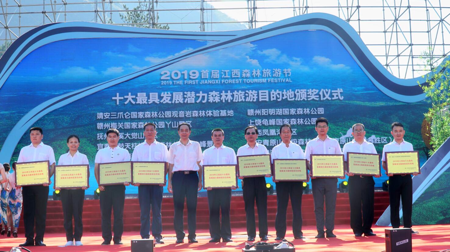 江西省文化和旅遊廳黨組書記、廳長池紅為十大最具發展潛力森林旅遊目的地授牌