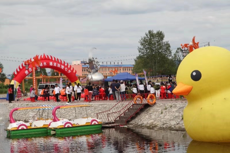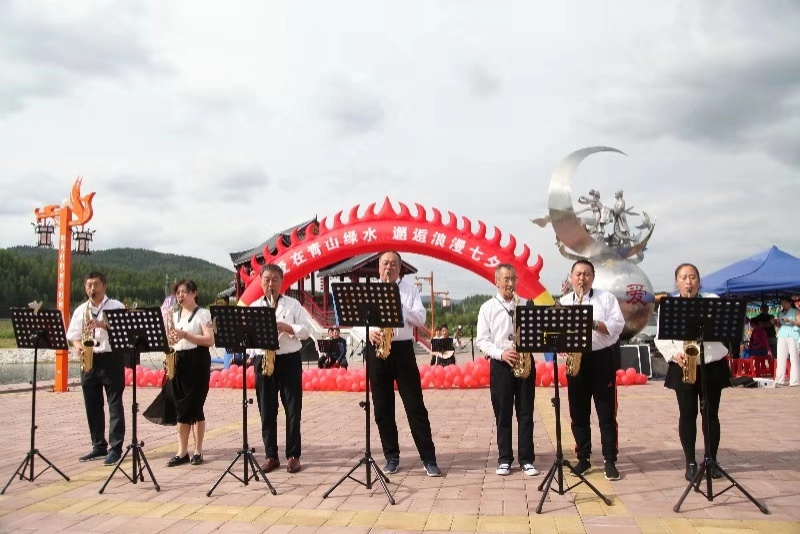 【香港商報網訊】七夕來臨之際,中國愛情小鎮·新林舉辦「愛在青山綠水·邂逅浪漫情緣」七夕會,大興安嶺新林區千餘名廣大職工群眾相聚林海管護區銀河水上樂園的鵲橋下,以歌舞、戲曲及開展趣味遊戲等方式迎慶七夕佳節。
