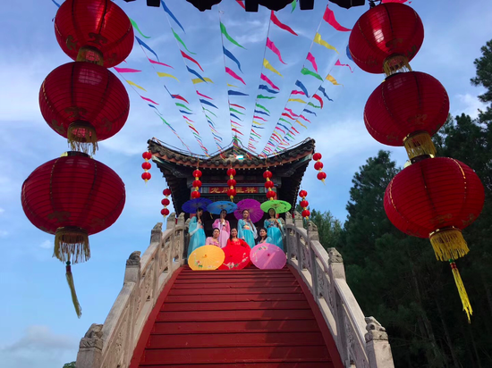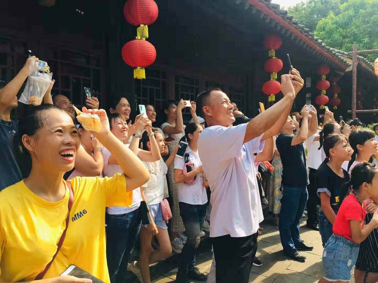當日,在甜愛文化園,200多位青年男女遊走了、鵲橋、雙喜大雁門、連理路、愛情坡、龍鳳亭、淑女亭、好逑亭、比翼亭、同心鎖等多個景點,整個甜愛文化園充滿了愛情文化的氣息。有七名穿著古代服飾的年輕女子化作“七仙女”,在鵲橋上與大家互動,成為一道靚麗的風景線。