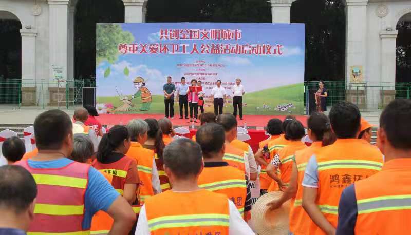 【香港商報網訊】8月8日上午,湖南邵陽市城市管理綜合執法局在城南公園舉行“共創全國文明城市、尊重關愛環衛工人”公益活動。由雙清區巾幗志願者協會會長謝純輝發起的“環衛功臣節”暨關愛環衛工人愛心接力活動同步正式啟動,來自雙清區、大祥區、北塔區的100餘名環衛工人分別收到秋月餐飲、海哥食品、邵陽味娜妙乳業、市中醫院等愛心單位贈送的礦泉水、優酪乳、牙籤牛肉、防暑藥品、毛巾等貼心禮物。