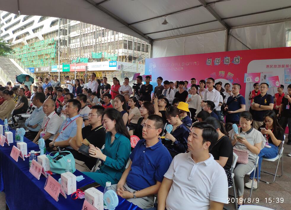 據瞭解,活動是由深圳市人民政府主辦、深圳市商務局承辦、深圳市旅遊協會執行協辦的“鵬城八月歡樂遊購·旅遊嗨翻天”活動於8月9日下午在華強北步行街盛大啟動。深圳市文化廣電旅遊體育局旅遊行業管理處處長張道新、深圳市商務局黎甦副處長、深圳市文化廣電旅遊體育局旅遊行業管理處調研員楊紹榮、深圳市福田區華強北街道黨工委委員、辦事處副主任吳眉、深圳市福田區文化廣電旅遊體育局文化市場綜合執法三科科長周江義、深圳市旅遊協會副會長兼秘書長宋強、深圳市旅遊協會常務副秘書長周泉霖、深圳市旅行社行業協會副會長王濤、深圳市老字型大小協會秘書長陳思思、深圳市福田區華強北旅遊文化促進會會長徐彥波、深圳市酒店業商會副秘書長冷紀宏等相關領導出席了本次啟動儀式,還有100多旅遊企業代表及市民遊客共同見證。