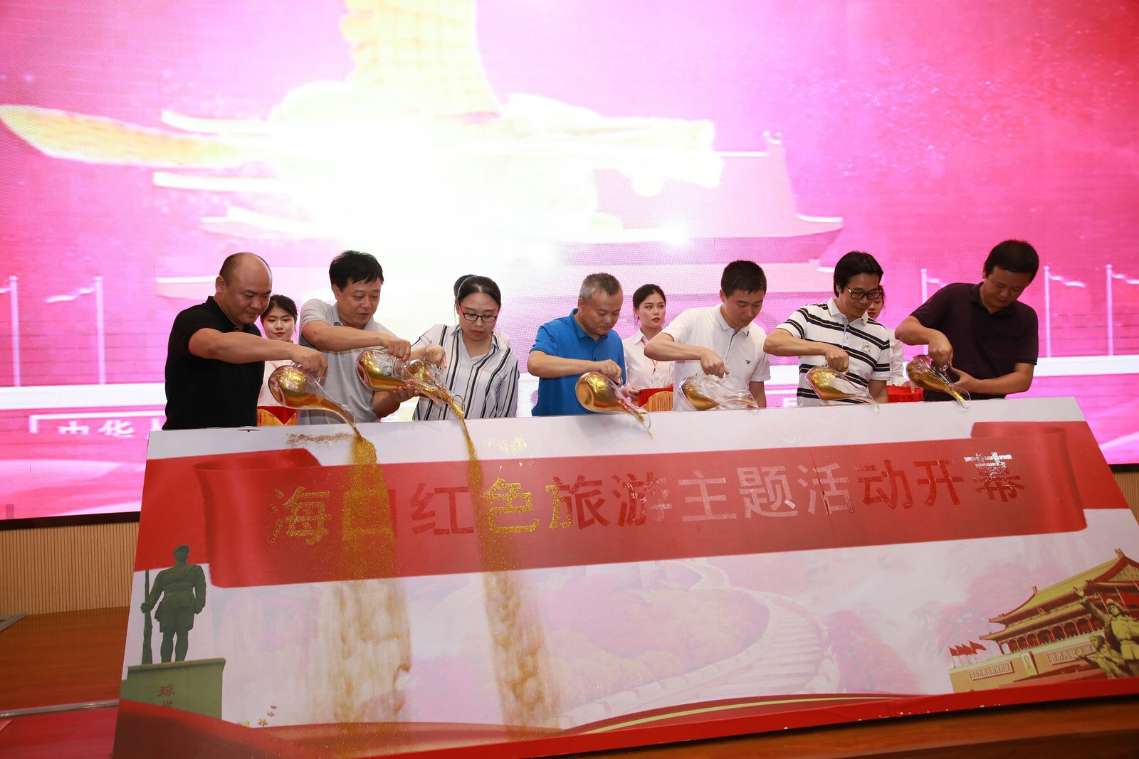 此次“我和我的祖國”海口紅色旅遊主題活動由海口市旅遊和文化廣電體育局主辦,圍繞繼往開來、憶苦思甜、情暖人心、不忘初心、舉國歡慶五個主題進行組織策劃,設置開幕式、紅色夏令營、公益扶貧、研學線路、全城互動五大板塊,歷時一個半月;通過組織參觀體驗、夏令營、研學、助力扶貧等方式,讓活動參與者“游中學、學中游、寓教於游”,將革命歷史、革命傳統和革命精神通過旅遊傳輸給廣大市民遊客,給人們以知識的汲取、心靈的震撼、精神的激勵和思想的啟迪。