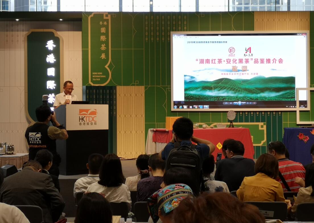 【香港商報網訊】8月16日,由湖南省農業農村廳、湖南省貿促會主辦的「湖南紅茶·安化黑茶」品鑒推介活動在香港會展中心「2019香港美食節暨香港國際茶展」上舉行。本次品鑒推介活動包括設立「湖南紅茶」、「安化黑茶」、「湖南茶葉」館展示展銷,舉辦「湖南紅茶·安化黑茶品鑒推介會」重推「湖南紅茶」、「安化黑茶」兩個主要品牌。湖南省農業農村廳副廳長蘭定國現場發表主旨講話,推介「湖南紅茶」、「安化黑茶」。
