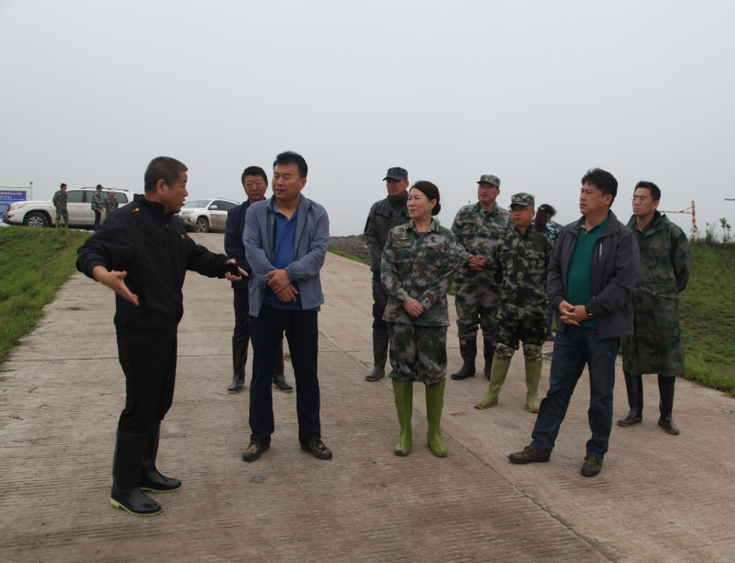 在檢查指導工作過程中,賀天元總經理認真聽取二九一分公司總經理田旭江彙報當前防汛抗災自救保生產工作情況,並認真察看水利地圖現場指導防汛排澇工作。同時,賀天元總經理強調,當前防汛排澇保生產工作任務艱巨,二九一分公司防汛抗災領導小組要繼續保持靠前指揮、一線指揮,認清當前防汛工作的重要性和緊迫性。要積極抓好防汛物資及機械準備、檢修和管理工作,為防汛抗災提供可靠保障。要全面提高安全防範意識,對於排灌站、提防、路橋、險工弱段、農田排澇等方面進行循環巡查,出現險情及時處置,全力組織抗災自救,全力以赴確保員工農業生產損失降到最低。圖為賀天元總經理在二九一分公司松花江堤壩查看水勢情況。(張曉蕾 孔祥濤 徐明峰 張曉磊)