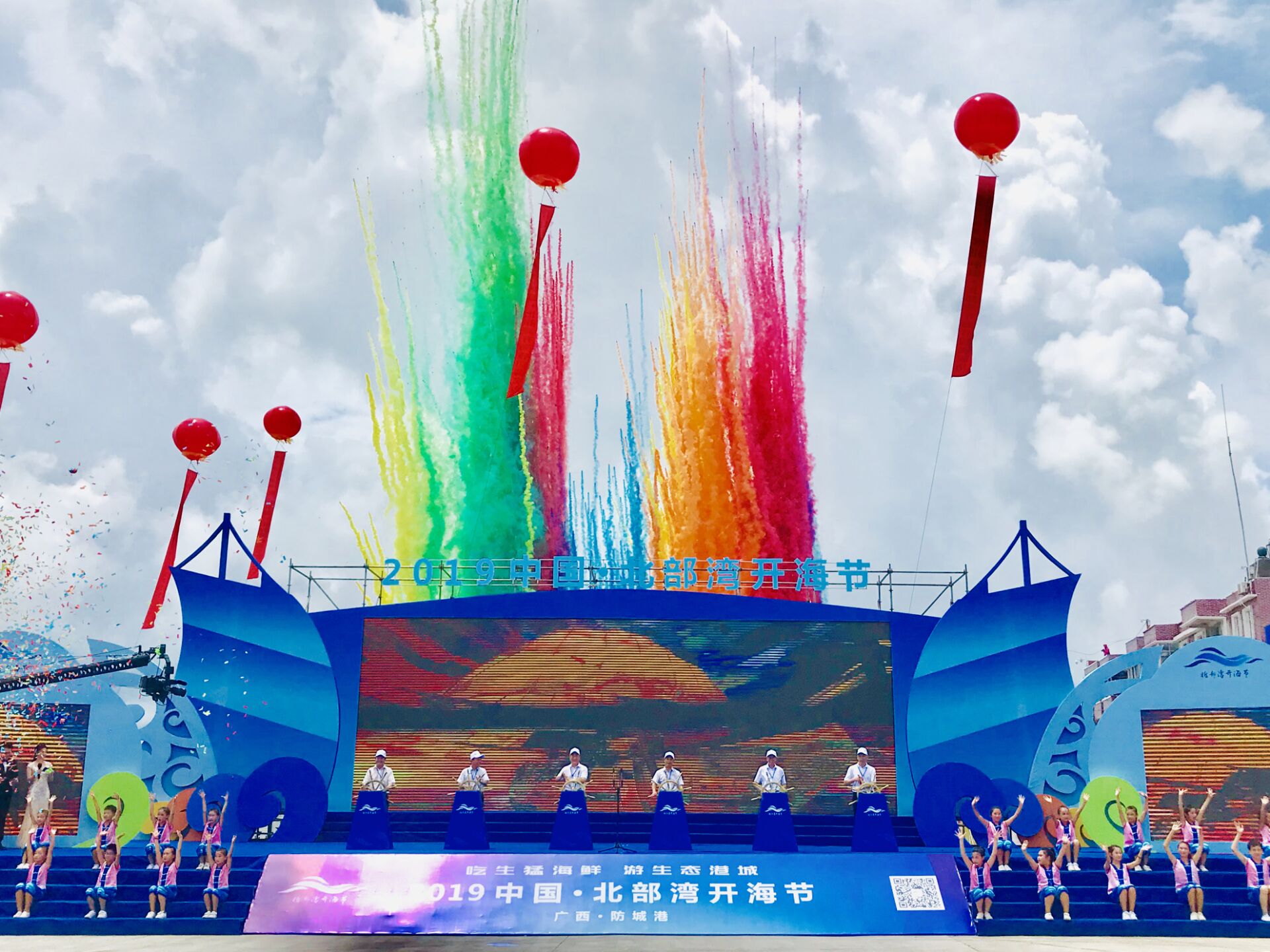 【香港商報網訊】8月16日,2019中國·北部灣開海節在廣西防城港市開幕。今年的開海節,通過豐富多彩的特色活動,進一步整合民俗文化資源,搭建多方交流合作新平臺,構建旅遊新業態,助力防城港市「一帶一路」西部陸海新通道的重要門戶城市和重要節點城市建設,助推加快構建海邊山現代化經濟體系。