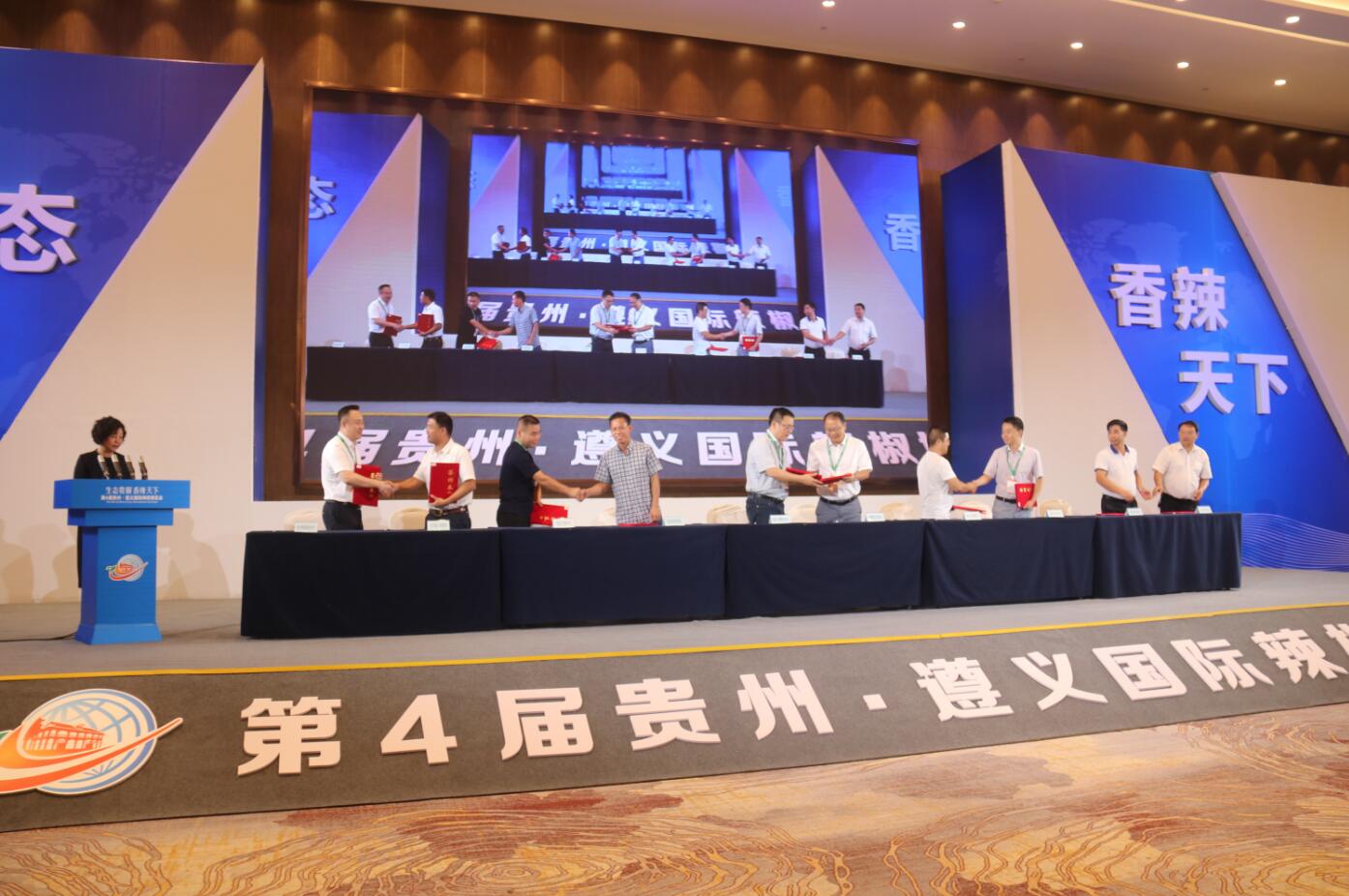 【香港商報網訊】18日上午,第4屆貴州·遵義國際辣椒博覽會辣椒採購商大會暨招商引資簽約大會在遵義舉行。本屆「辣博會」簽約項目34個,總投資24.21億元。其中,遵義市23個簽約項目,其中戰略合作協議5個;銷售協議4個,總金額1.75億元;投資合同14個,總投資12.77億元。貴陽、畢節、安順等7個市(州)11個簽約項目,總投資11.44億元。來自意大利、韓國、馬來西亞等國外嘉賓及省內外、國內知名辣椒企業、科研機構、行業組織負責人等見證簽約。