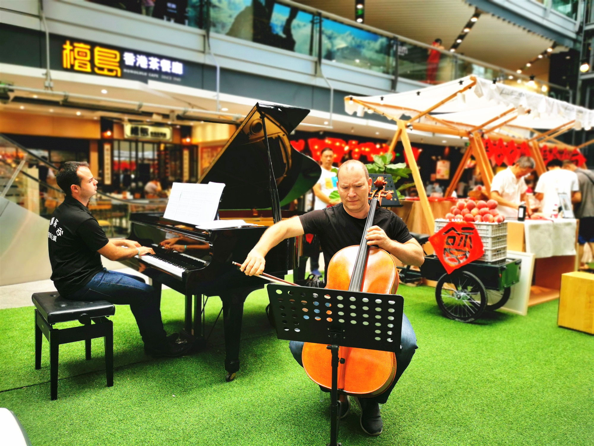 在當天的文旅主題日上,西班牙瓦倫西亞樂團的小提琴大師JoseVicente先生、大提琴Tsirin先生和古典吉他演奏家Miguel Perez先生等著名藝術家們走進市集,舉辦公益交響音樂會,市民在享受平谷大桃味蕾甜蜜的同時,真切感受到了音樂帶來的愜意與快樂。
