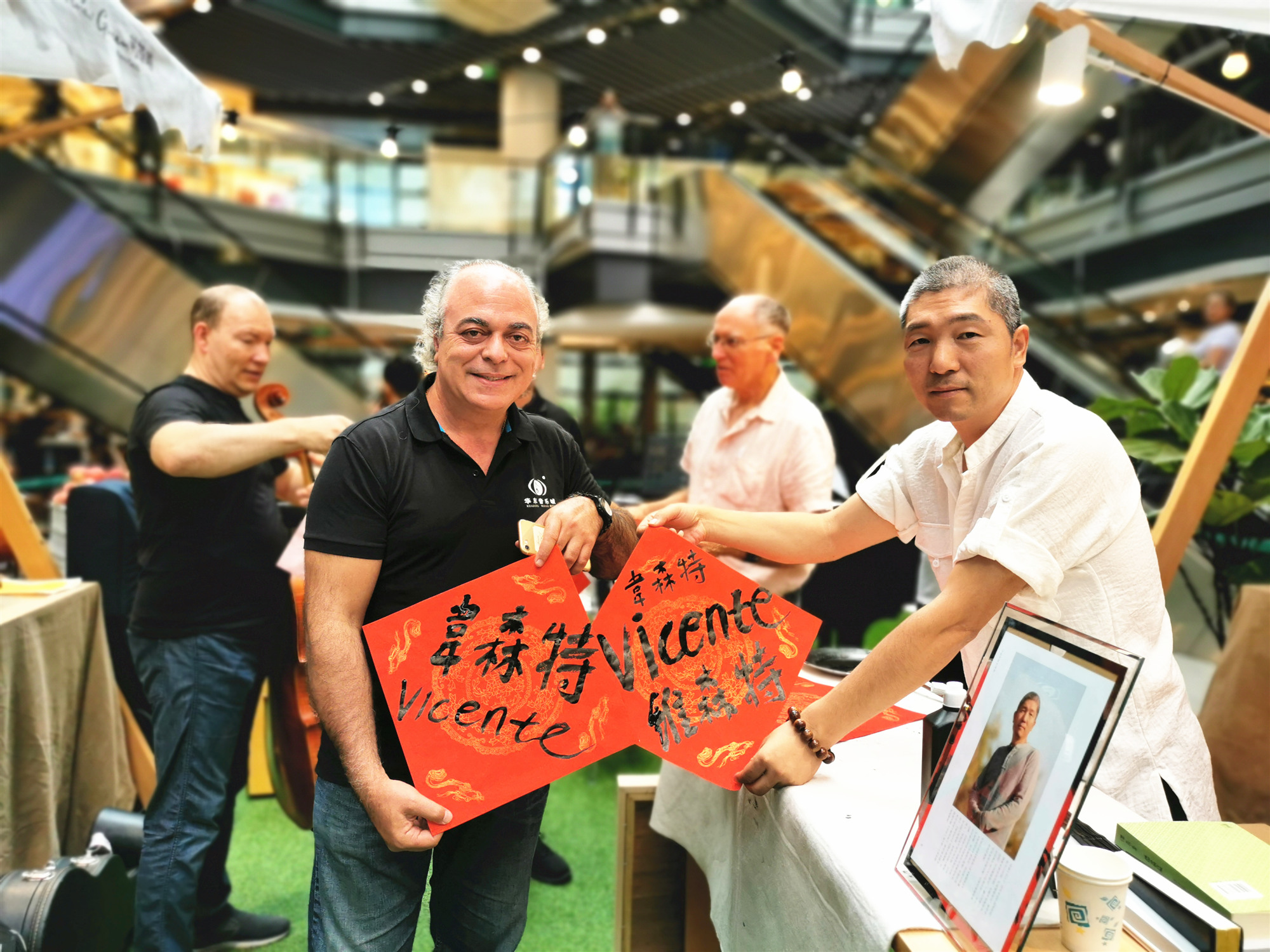 平谷籍書法家馬耘應西班牙瓦倫西亞樂團的小提琴大師Vicente邀請題贈雙語書法作品