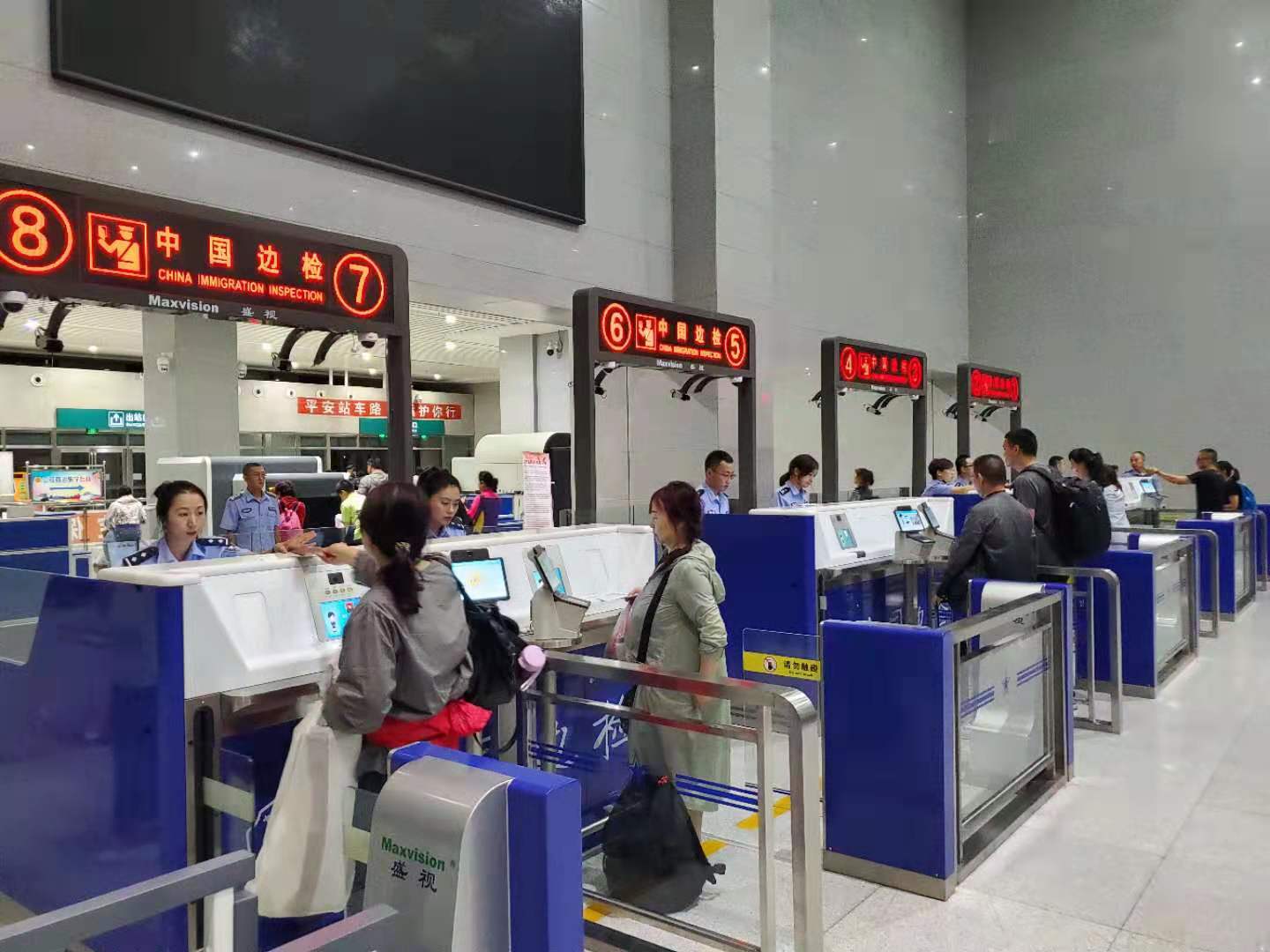 【香港商報網訊】8月17日深夜22時,黑龍江綏芬河鐵路口岸查驗通道仍然燈火通明,人頭攢動。綏芬河出入境邊防檢查站雷鵬同志現場帶班指揮、細化部署,執勤民警全力投入,認真、快速地檢查入境旅客證照。受持續強降雨影響,周邊東寧口岸閉關,大量中國遊客滯留在俄羅斯境內,無法按時正常入境。綏芬河出入境邊防檢查站得知這一情況後,迅速與綏芬河火車站及俄羅斯邊檢部門溝通協商,接納轉道而來的滯留旅客,從8月16日到18日,綏芬河出入境邊防檢查站共驗放旅客 1.57萬人次,全部滯留旅客及時順利通關。
