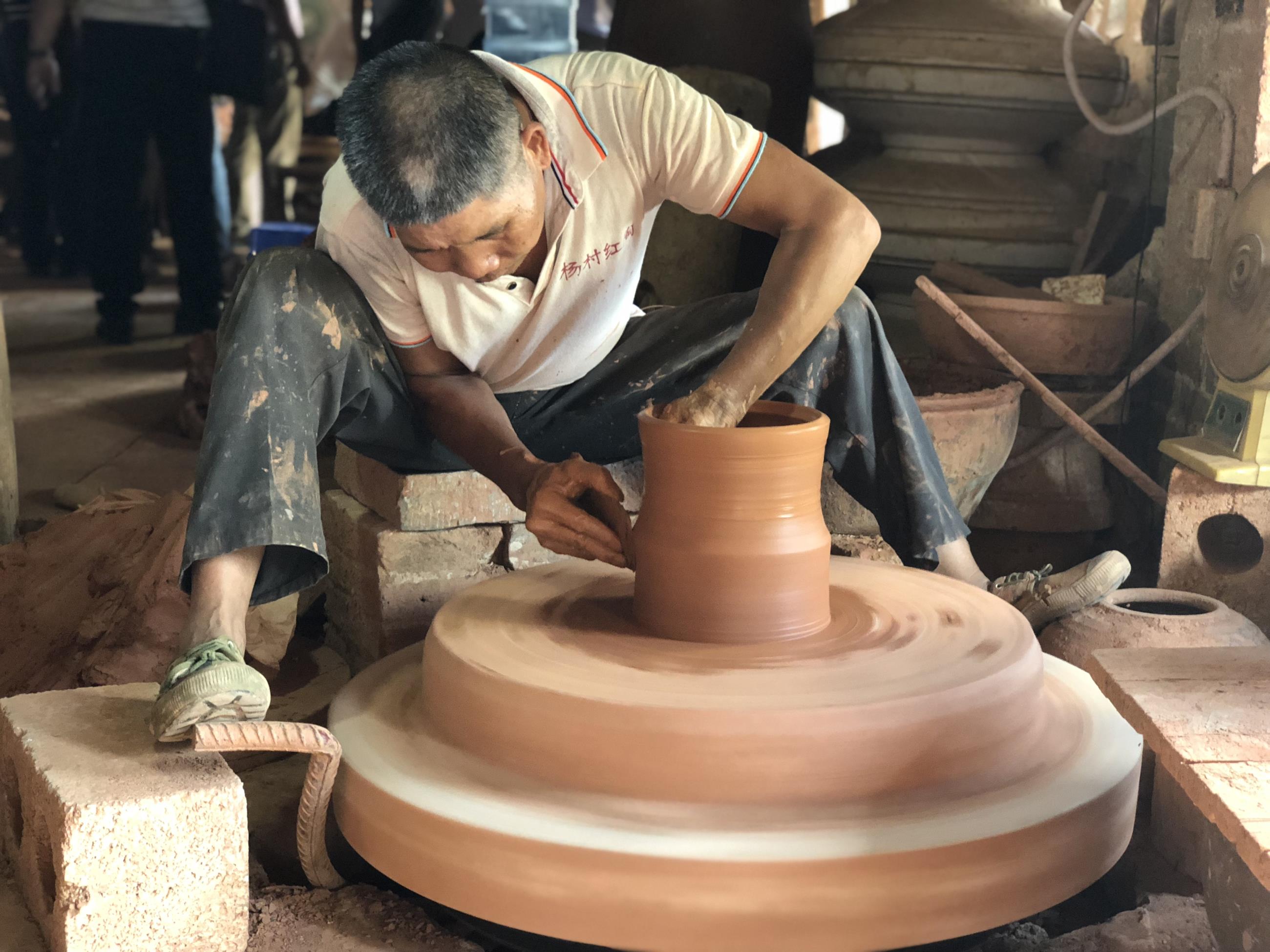 陶藝師在製作陶坯