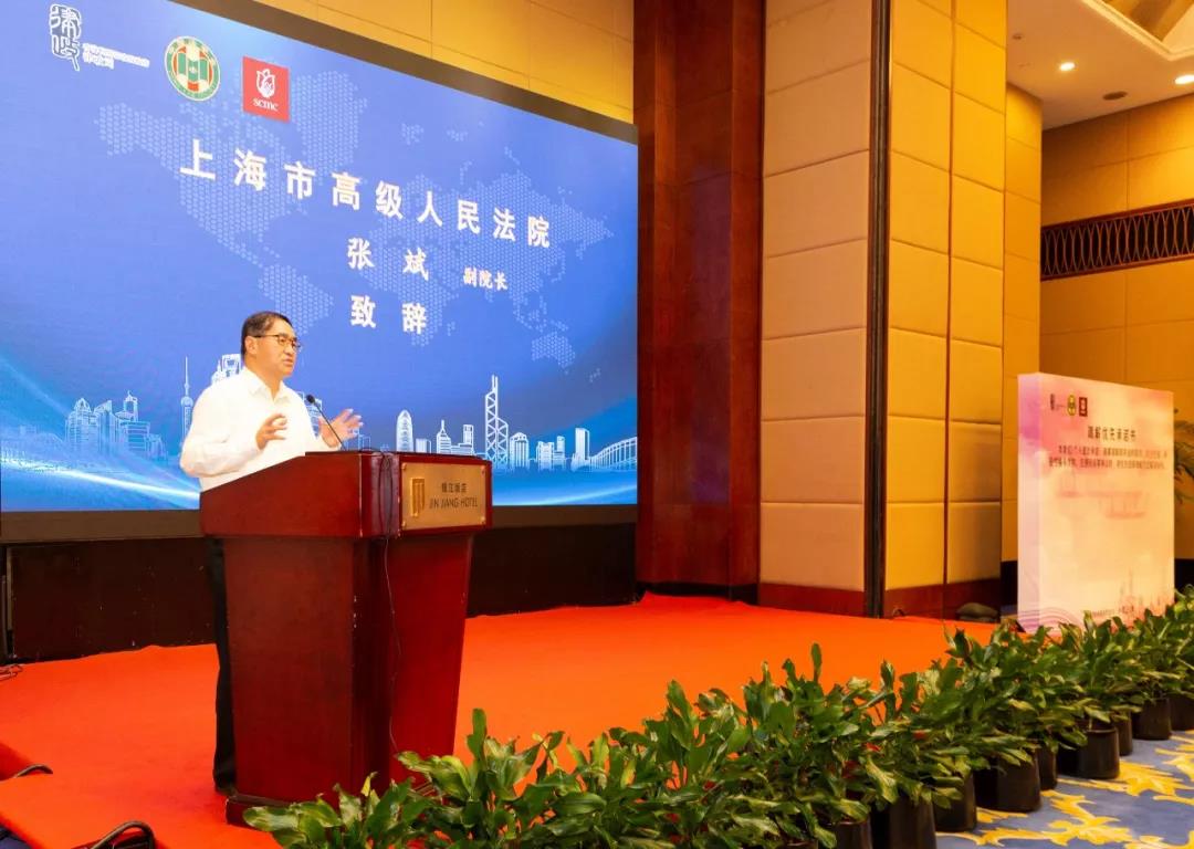 上海市高級人民法院副院長張斌致辭(圖片由上海經貿商事調解中心提供)