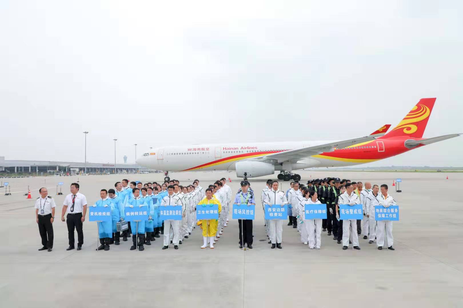 本次演練模擬情景為西安海關接到海關總署轉WHO(世界衛生組織)通報,一架載有某傳染病疑似病例的國際航班即將飛抵西安咸陽國際機場。西安海關接報後,快速啟動應急處置預案,對搭乘該航班的疑似病例和其他旅客開展衛生檢疫、邊防檢查、病例轉運和終末消毒等應對處置行動。演練結束後,西安海關與陝西省衛生健康委員會簽署了應對口岸突發公共衛生事件合作機製備忘錄。