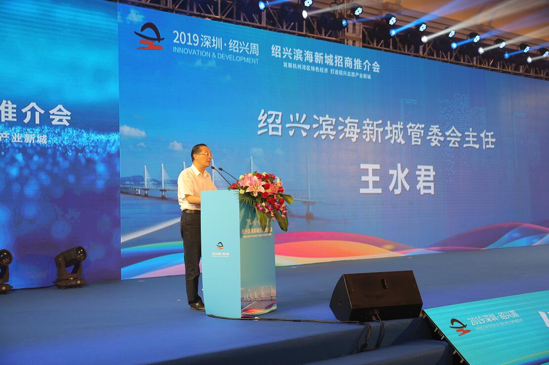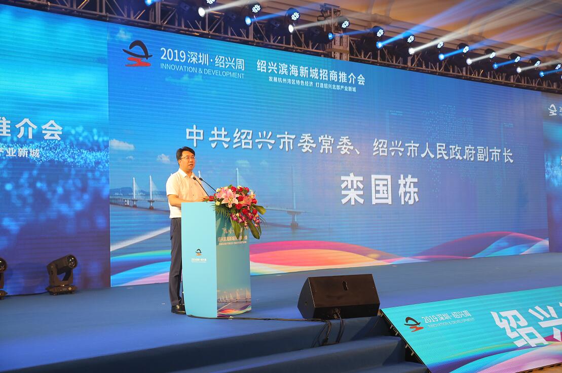 【香港商報網訊】記者 蘇偉 報導:8月21日下午「深圳·紹興周」紹興濱海新城招商推介會在深圳華僑城洲際大酒店舉行。紹興市委常委、副市長欒國棟出席會議並講話,紹興濱海新城管委會主任王水君致辭,深圳市計量質量檢測研究院院長李翔致歡迎詞,安吉爾集團總裁孔那代表深圳企業發言。深圳市相關行業協會領導、科技型園區開發商、運營商代表;紹興籍在粵在港企業家;深圳及周邊地區檢驗檢測行業、生命健康企業、高端裝備製造、電子信息企業等有關企業代表,有關高校、研究院專家學者、技能人才等350餘人參會。