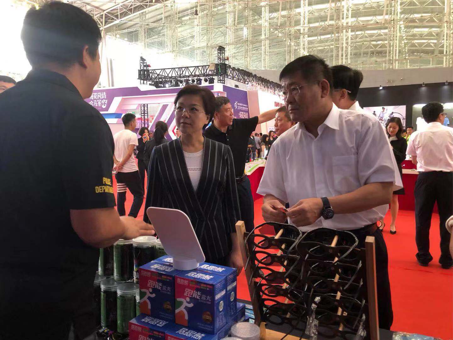 哈爾濱市政府副市長陳遠飛(左一)、哈爾濱市政府副秘書長王憲民(右一)參觀博覽會展區 王琳/攝