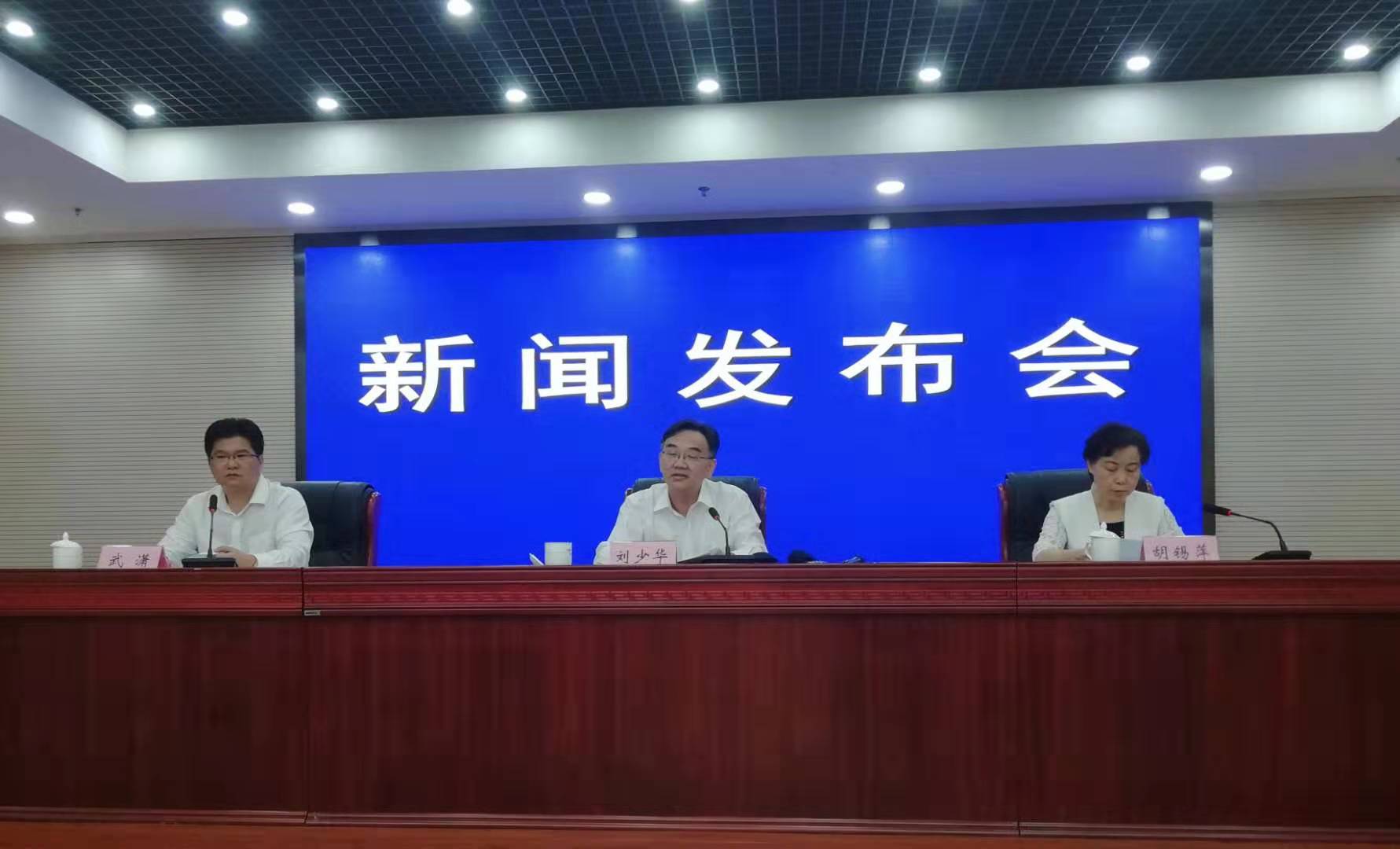 安徽省職業技能提升行動實施方案(2019-2021年)新聞發佈會現場。左起:安徽省委宣傳部新聞發佈處處長武瀟主持新聞發佈會,安徽省人力資源社會保障廳副廳長劉少華、省財政廳副廳長鬍錫萍分別介紹相關情況。(孫軍/攝)