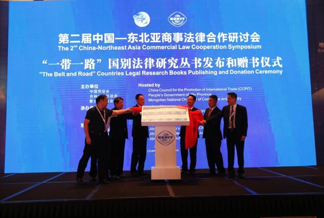 來自東北亞各國的10位法學法律界和貿易投資界專家與會,以「東北亞地區跨境投資與商事法律合作」為主題,進行了熱烈研討。包括80多位企業家在內的200多位嘉賓參加了會議。會上還舉行了中國貿促會《「一帶一路」國別法律研究叢書》發佈和贈書儀式。