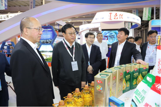 【香港商報網訊】政要聚集共謀發展,萬商雲集交流合作。8月23日,備受矚目的第十二屆中國-東北亞博覽會在吉林省長春市啟幕。九三集團攜具有「大」「好」「高」「強」「優」五大優勢的明星產品亮相於長春國際會展中心東北振興與對口合作館。北大荒農墾集團總公司(農墾總局)黨委副書記、副董事長、總經理徐學陽,黨委委員、副總經理武安到九三集團展位指導,集團總裁史永革介紹了九三集團參展情況和產品信息。集團副總裁孫鵬、牟欣倫、王秀濤陪同。
