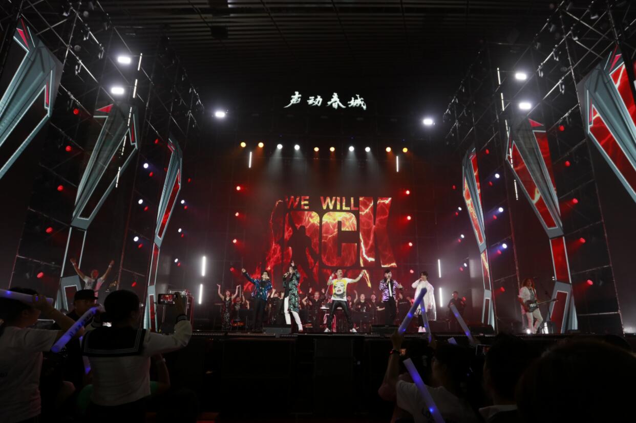 【香港商報網訊】8月24日、25日晚,一連兩場2019「聲動春城」演唱會在長春市東北師範大學體育館熱力開唱。長影樂團攜手來自歐洲的四人搖滾組合「Queen皇后致敬樂隊」,以及聲樂綜藝節目《聲入人心》實力唱將王晰、簡弘亦、王凱、翟李朔天、廖佳琳、劉彬濠、李文豹、李向哲等「梅溪湖8子」,為現場近5000名觀眾帶來狂野搖滾與天籟美聲的激情碰撞,引爆了春城的夏日之夜。