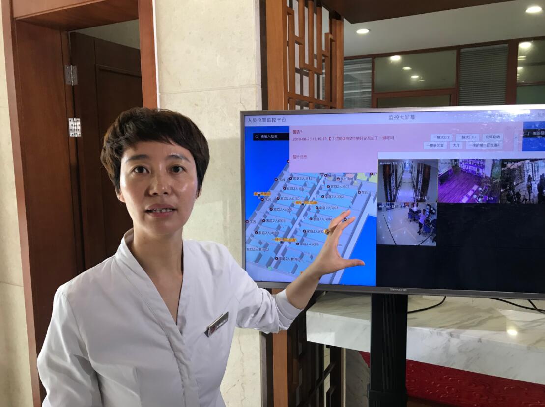 院內走廊上,每隔一小段距離還安裝有一個智能網關,「這些網關能夠將怡養院的278個攝像頭連接起來,並為每一位老人所佩戴的智能胸卡提供定位服務。」百禾怡養院院長趙娟說,在安全防護方面,怡養院的智慧養老雲服務系統擺脫了限制活動範圍的被動防護辦法,代之以劃定危險區域,通過物聯網技術將每一個老人的活動信息投射在雲平台上進行監測和管理,並且提高了護理人員管理的科學性。百禾怡養院現有180餘位老人入住,護理人員30多名。
