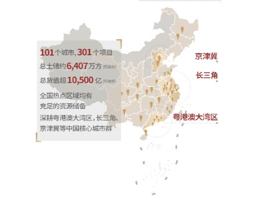 目前,世茂土地資源儲備已遍布全國101個城市,運營及在建項目301個,截至2019年6月30日,權益前土儲面積約 6407萬平方米,權益前土儲貨值超10500億元。世茂緊跟國家發展戰略,聚焦於深耕長三角城市群及粵港澳大灣區,可售貨值分別達2850億元、2600億元,多點支撐未來長效有品質增長。