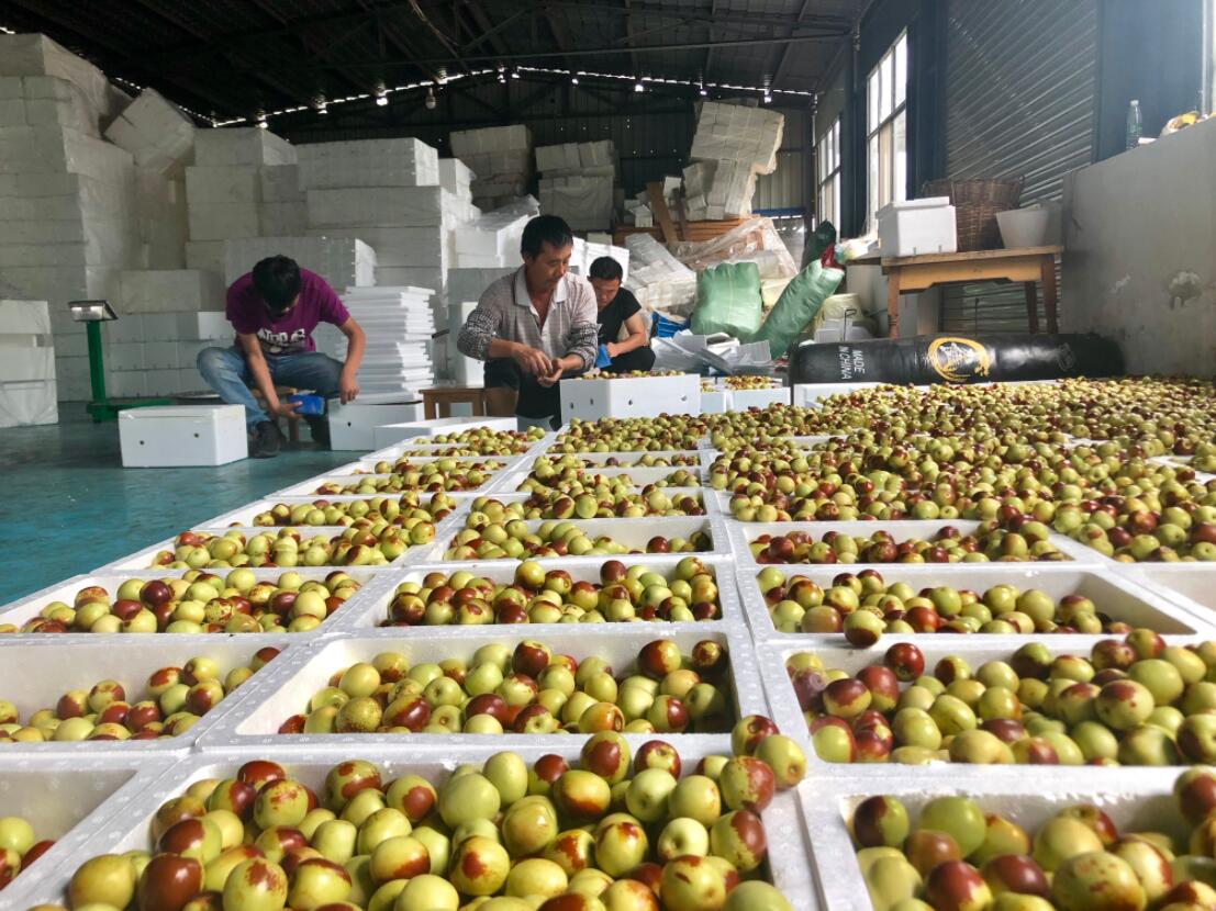 馬龍縣錢棗生態種植有限公司的工人正忙着包裝「麒麟棗」