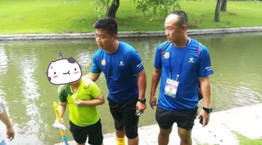 監控視頻裏,我們看到了您二位救人的全過程,奮不顧身的躍入水中,堅毅、果敢、迅捷、有效,好似足球傳遞的曲線。通過監控視頻和現場工作人員記錄的影像,經過多方瞭解,我們確定了您二位的身份,本次足球總營第八營區男子甲組2位教練——海南省潘靜龍教練和福建省梁豔剛教練。