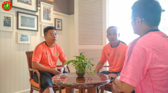 幾經輾轉,東方綠舟安保部門確定兩位救人男士來自校園足球夏令營初中總營,經過照片和視頻比對,最終鎖定第八營區男子甲組兩位教練員:潘靜龍和梁豔剛。