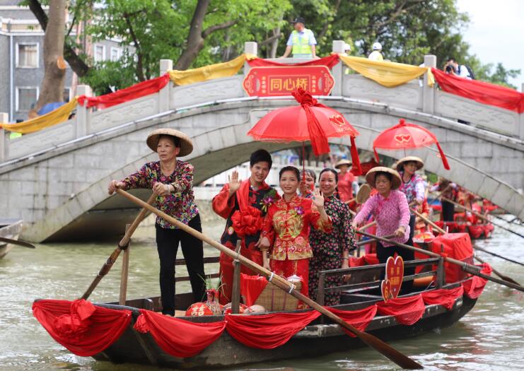水鄉婚禮精心設置了嫁娶路線,新郎從濠涌親水平台(男家)出發,新娘在黨群服務中心前的埠頭(娘家)翹首以待。新郎接上新娘後,載上新人的12艘婚艇浩浩蕩蕩開始幸福大巡遊,先後經過厚德橋、同心橋,最後回到親水平台,接受親朋好友和周邊居民群眾的祝福,親身感受「百年修得同船渡,千年修得共枕眠」的寓意。