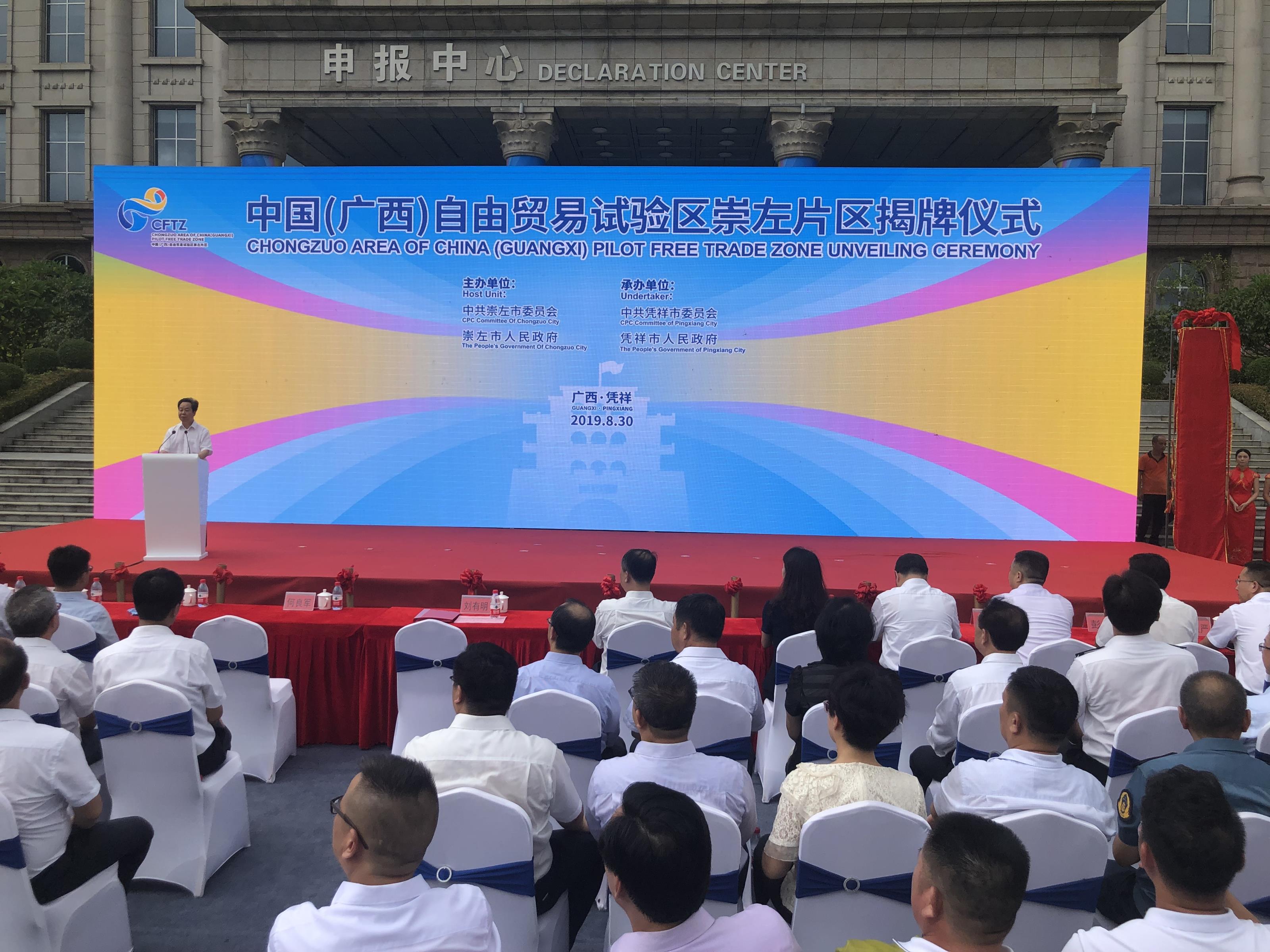 【香港商報網訊】8月30日,中國(廣西)自由貿易試驗區崇左片區舉行揭牌儀式。根據中國(廣西)自由貿易試驗區總體方案,崇左片區實施範圍15平方公里,重點發展跨境貿易、跨境物流、跨境金融、跨境旅遊和跨境勞務合作,打造跨境產業合作示範區,構建國際陸海貿易新通道陸路門戶,打造新時代沿邊開放新高地。