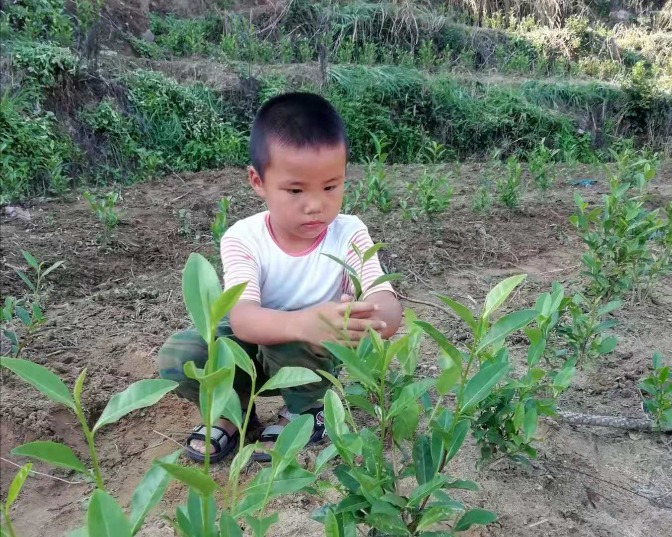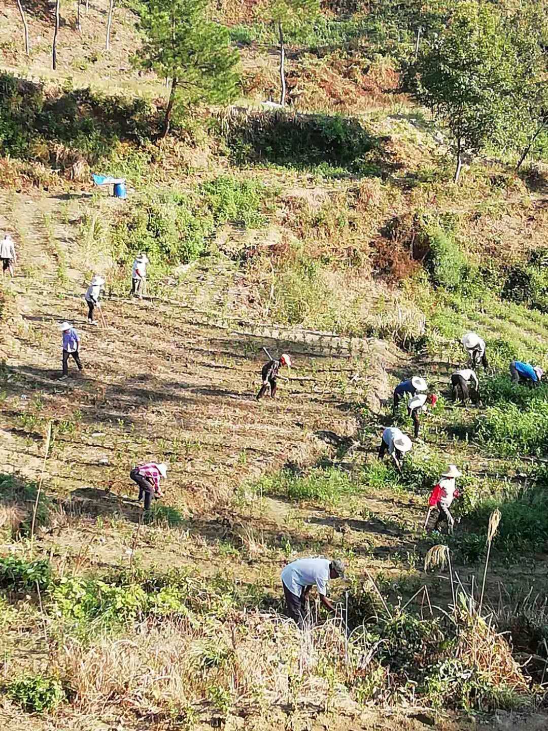 8月29日,距離太湖縣城約兩個半鐘頭的小池鎮石霞村,在繁昌·太湖結對幫扶項目——石霞山白茶基地,有102戶貧困戶在忙着種植白茶樹苗。73歲的村民葉善普說,每天幹活有100元收入,日子比以往好許多,更有盼頭了。