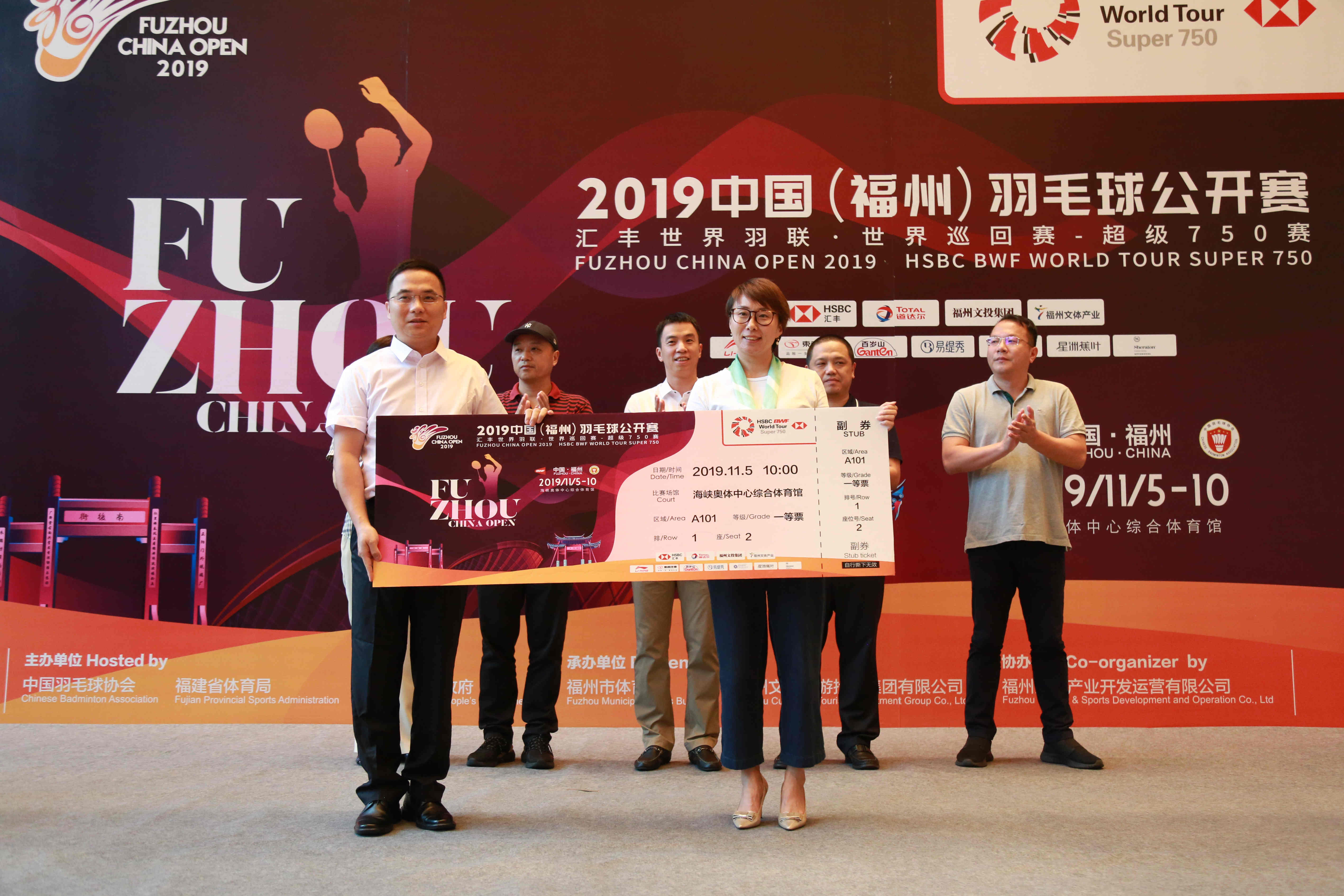 【香港商報網訊】30日下午,2019中國(福州)羽毛球公開賽——滙豐世界羽聯·世界巡迴賽超級750賽(下稱“2019中國(福州)公開賽”)開票儀式暨啟動發佈會在福州倉山凱悅酒店舉行。據了解,本次賽事將於2019年11月5日-10日在海峽奧體中心綜合體育館舉行。